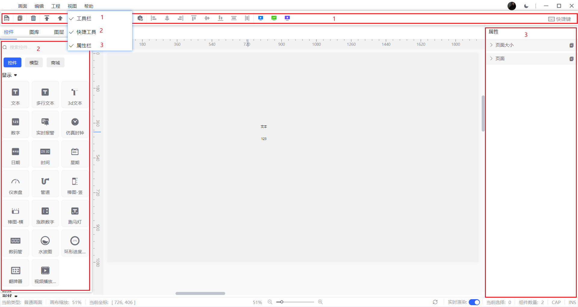 控件一级菜单分为:控件、图库、图层、资源4个板块